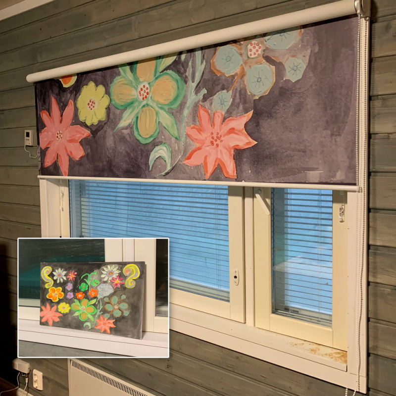 Alla muutamia asiakkaittemme tilaamia rullaverhoja.